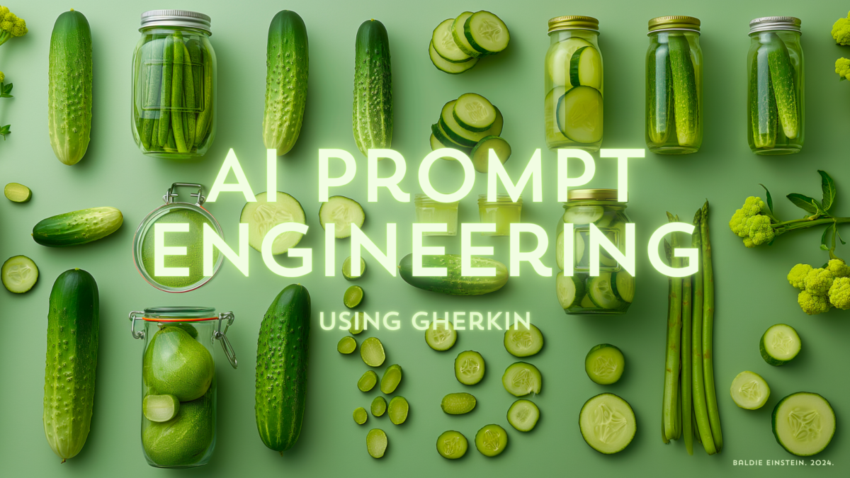 As a product manager, this was similar to writing user stories for the Design and Engineering teams. User stories were how we communicated our requests and broke down large chunks of a project into smaller, easier-to-understand pieces. Cue the light bulb, and I started to make the connection between the two. I discovered that the system we used – Gherkin (that’s the pickle) – can be applied to prompt engineering.